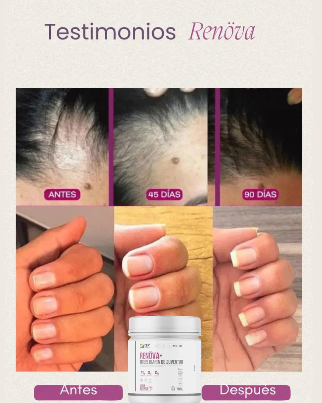 Fortalece cabello y uñas: ayuda a que crezcan más fuertes, sanos y con mejor apariencia.